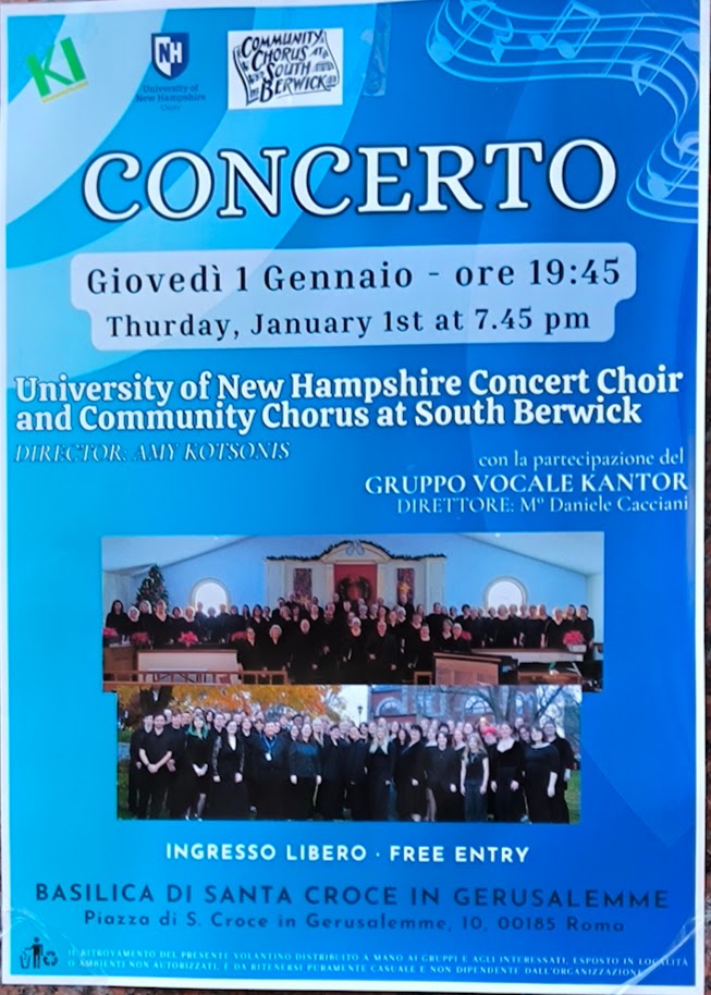 • 1/1/26 Concerto del New Hampshire Concert Choir e del Community Chorus at South Berwick a Santa Croce in Gerusalemme