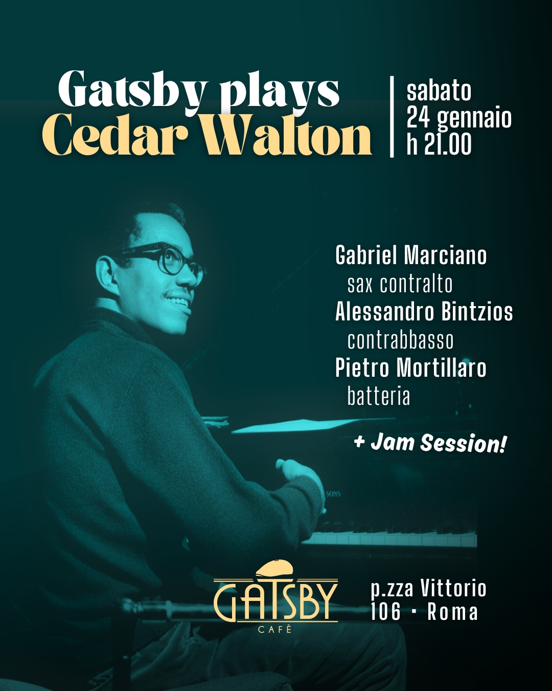 24/1/26 “Gatsby plays Cedar Walton + Jam Session” al Gatsby Cafè