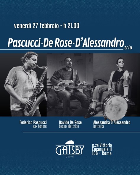 27/2/26 “Pascucci, De Rose, D’Alessandro Jazz Trio” al Gatsby Cafè