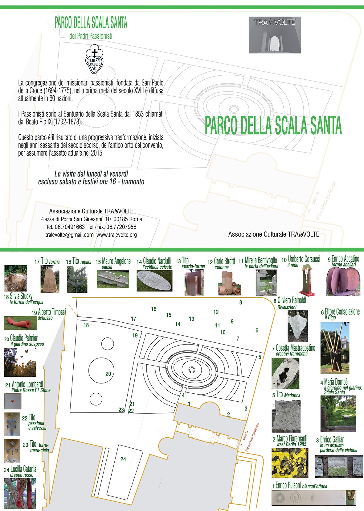 Sarà aperto al pubblico il Giardino del Convento dei Padri Passionisti alla Scala Santa. Ambiente mistico e magico, ma anche laico e artistico, grazie agli interventi creativi di architetti-artisti