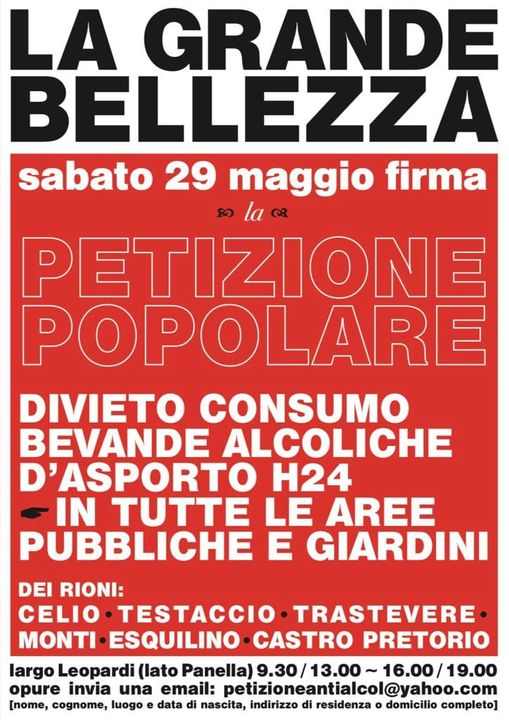 In particolare in via Appia Antica, tra Porta San Sebastiano e via Appia Pignatelli, domenica 23 maggio è consentito esclusivamente il transito pedonale e ciclabile, dalle 10 alle 13 e dalle 16 alle 19 (ad eccezione esclusivamente dei mezzi di soccorso e d’emergenza tecnica, della Polizia Locale e delle forze di Polizia e delle Forze Armate).