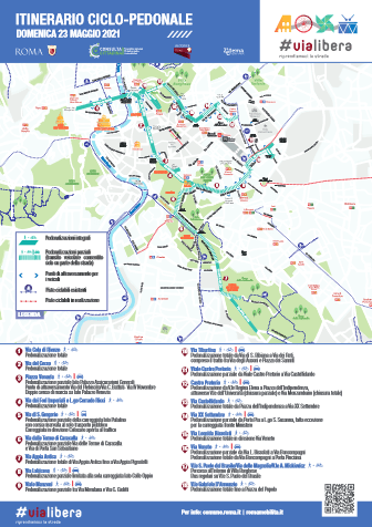 Domenica 23 maggio torna #ViaLibera, l’iniziativa di Roma Capitale dedicata a pedoni e ciclisti. Dalle 10 alle 19 oltre 15 chilometri di strade tra Centro, Esquilino, Tiburtina, Termini, Pinciano e Prati saranno chiuse al traffico, formando un unico percorso ciclopedonale. Tra le strade interessate: via Cola di Rienzo, via Tiburtina (San Lorenzo), via dei Fori Imperiali, largo Corrado Ricci e via Appia.