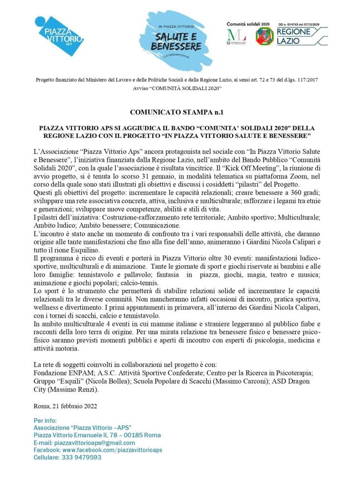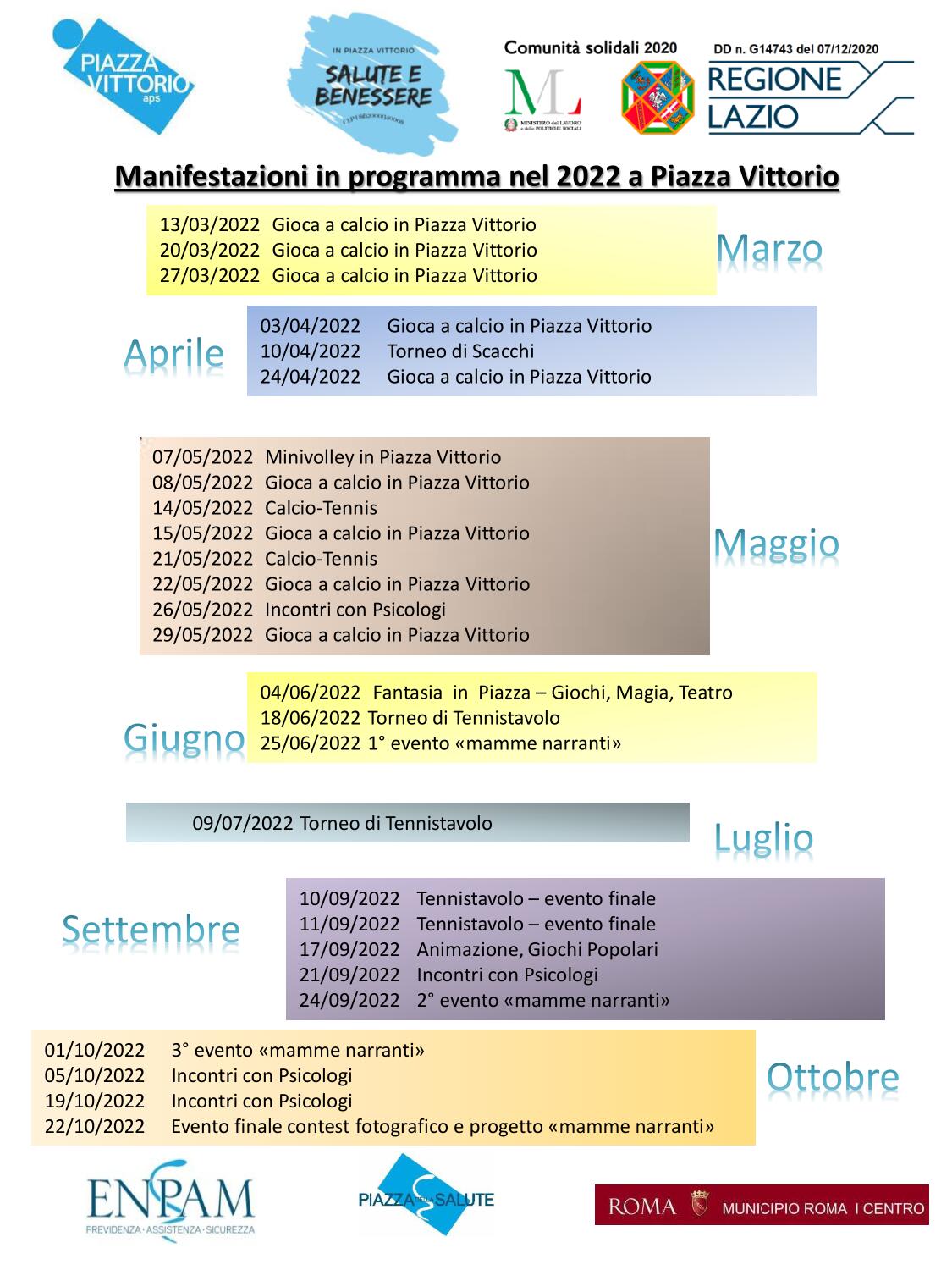 Grazie al progetto “Salute e Benessere in Piazza Vittorio” dal prossimo 13 marzo inizieranno diversi eventi nei giardini della Piazza simbolo del Rione Esquilino. Tutti i residenti (e non solo) sono invitati a prendere parte e/o ad assistere come spettatori alle manifestazioni di varia natura che ci accompagneranno per gran parte del corrente anno.
