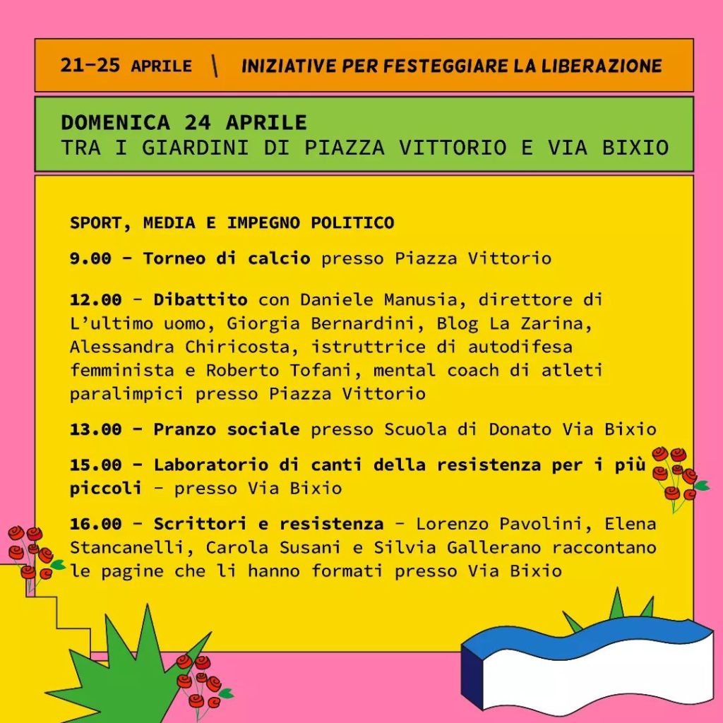 12.00 Dibattito con Daniele Manusia, direttore de L’ultimo uomo, Giorgia Bernardini, Blog La Zarina, Alessandra Chiricosta, istruttrice di Autodifesa Femminista e Roberto Tofani, mental coach di atleti paralimpici presso Piazza Vittorio