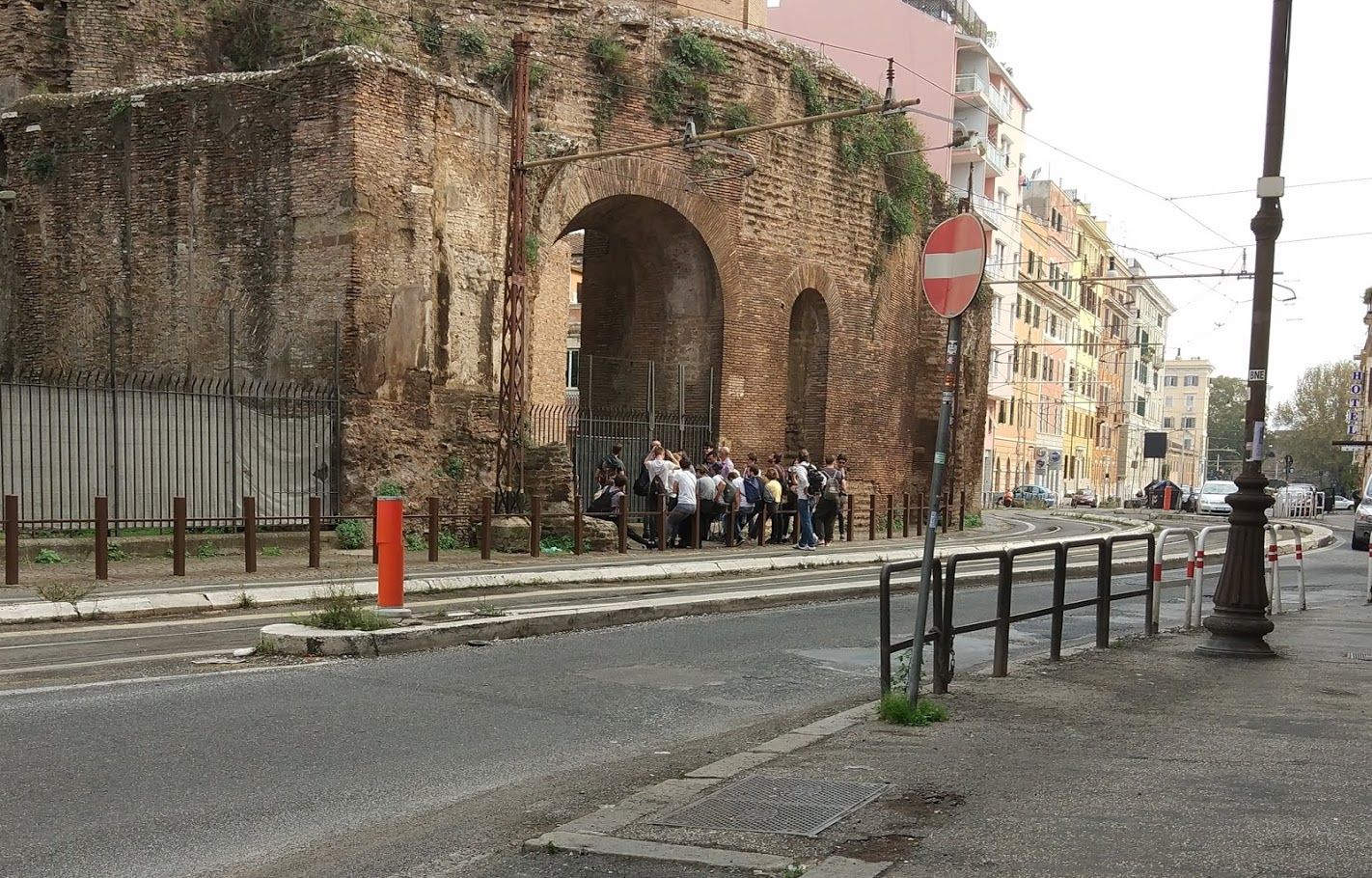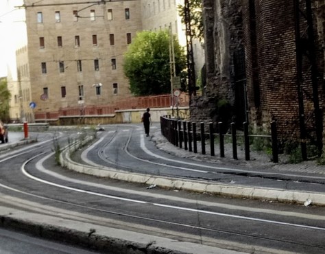 vorremmo ritornare sull’annoso problema delle rotaie a via Giolitti che riescono non solo ad ostacolare il cammino dei pedoni ma anche il lavoro dei mezzi di emergenza, di soccorso e di servizio. E tutto questo per un semplice motivo: perchè lì le rotaie (e men che meno i treni) non avrebbero mai dovuto esserci per dei meri motivi di spazio. Senza usare perifrasi, la legge impone alle rotaie di un treno di essere poste a una distanza di sicurezza dagli edifici e ovviamente dai monumenti. Nel caso di via Giolitti questa legge viene completamente disattesa e non si capisce per quale motivo da cento anni a questa parte tutte le amministrazioni che si sono succedute hanno sempre soprasseduto e fatto finta di niente. Ecco cosa sono costretti a fare i pedoni che decidono di transitare dal lato del cd. Tempio di Minerva Medica