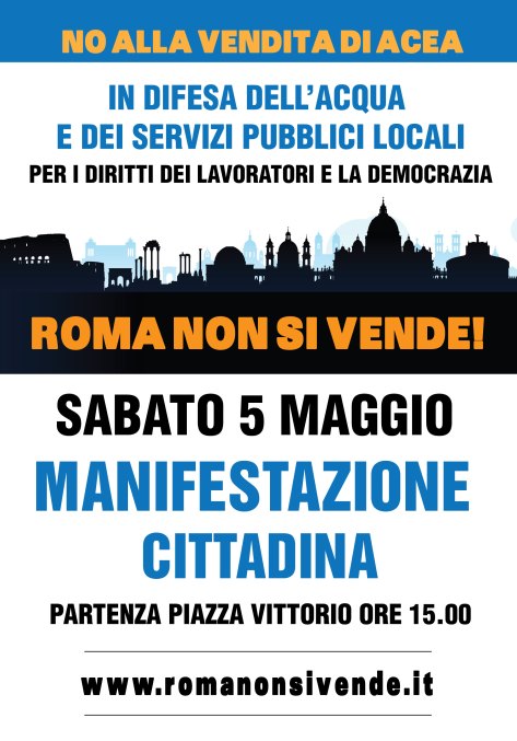 Sabato 5 maggio “Roma non si vende” manifestazione cittadina a Piazza Vittorio