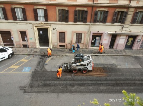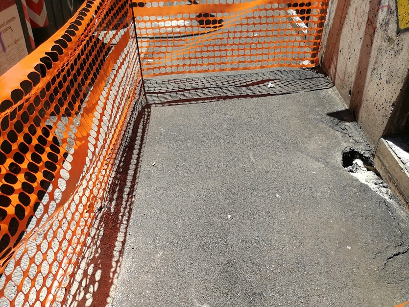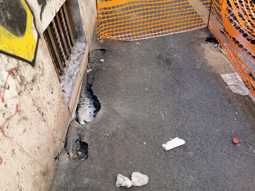 Quelli di via Bixio non si accontentano di utilizzare la feritoia della fogna lì presente, ma con grande maestria aprono buchi sul piano del marciapiede per assicurarsi maggiori vie di fuga e di riparo in presenza di pericoli. Specie la sera si assiste ad un continuo via vai alimentato sprattutto dai rifiuti gettati fuori dai cassonetti. Martedì 22 agosto una squadra del Comune è arrivata sul posto ed ha tappato i buchi con il solito asfalto a freddo che viene utilizzato anche per le strade e il risultato alla fine del lavoro era questo (notare quanti fori avevano aperto i roditori)