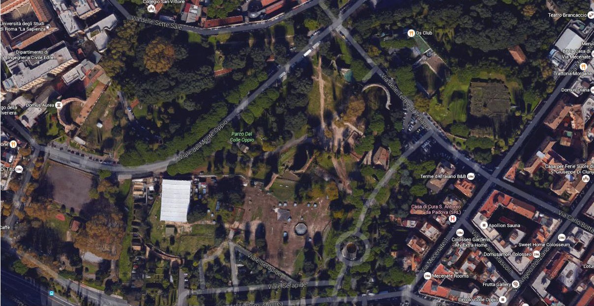 E’ un ulteriore, fantastico ambiente di epoca romana dell’Esquilino facente parte del complesso degli Horti Lamiani, rinvenuto già a fine ‘800 nei sotterranei del Palazzo della Cassa Depositi e Prestiti a Piazza Dante. L’intero edificio è stato interessato da anni da un’opera di ristrutturazione. La Soprintendeza Capitolina ai Beni Culturali aveva proposto un progetto (vedi immagine) per esporre questo monumento all’interno del giardino di Piazza Dante suscitando non poche perplessità. Da oltre un anno e mezzo non abbiamo più notizie certe sulle decisioni prese. Non sarebbe una cattiva idea proporre un bando di gara magari solo per un progetto di idee per valorizzare al meglio questa opera di inestimabile valore.