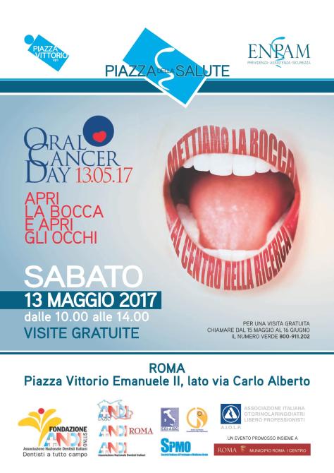 Sabato 13 maggio dalle 10 alle 14 nei giardini di Piazza Vittorio ci sarà l’Oral cancer day, la Giornata di prevenzione del tumore del cavo orale.
