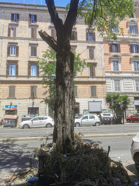 Purtroppo solo quando si sfiora la tragedia e vengono giù alberi secolari come a via Merulana il 10 agosto scorso allora si controllano le altre piante e si arriva a drastiche conclusioni come indicato negli articoli di “La Repubblica” e “Roma Today” . E, per esempio, a via di Porta Maggiore si lasciano i monconi anneriti degli alberi abbattuti ormai da decenni senza che ci sia mai stato un qualsiasi piano di plantumazione.