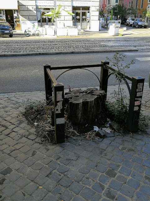 Ora è chiaro che è più sicuro camminare su questi marciapiedi e sono spariti dei possibili “cestini” improvvisati per rifiuti che rendevano un’idea di degrado ancora peggiore del solito, ma era proprio impossibile piantare nuovi alberi? Non crediamo che mancassero i fondi per comprare cinque o sei nuovi alberelli. E poi, c’è la sorpresa finale perchè, non sappiamo se per un problema di bando che non prevedeva questa ulteriore operazione, o per una semplice dimenticanza della solerte squadra di tappabuchi, ma a viale Manzoni c’è ancora questo ricordo