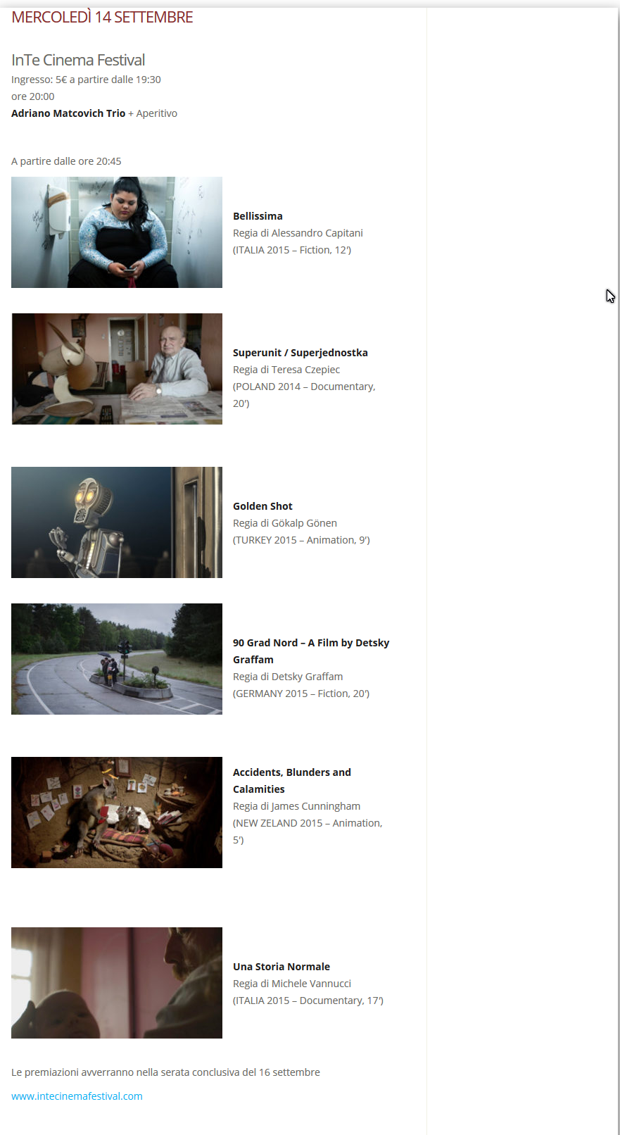 il programma completo di tutti gli eventi