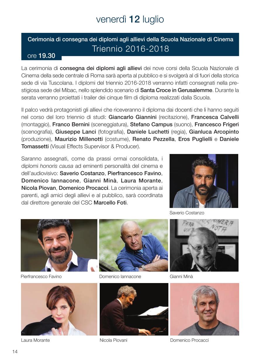 12 luglio 2019 Cerimonia di consegna dei diplomi agli allievi della Scuola Nazionale di Cinema a Santa Croce in Gerusalemme