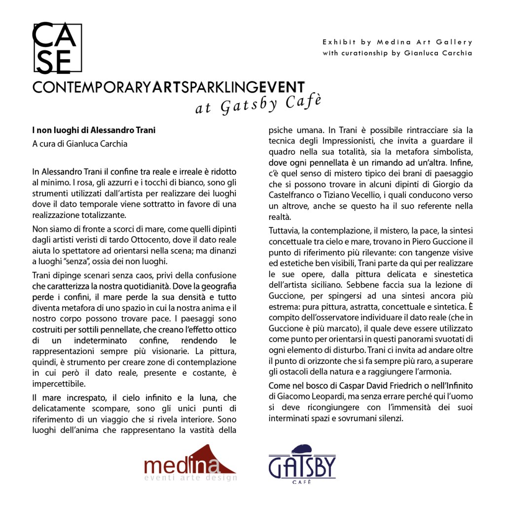 …Trani ci restituisce il mare come simbolo universale di rinascita, introspezione e sogno. Le sue opere, sospese tra calma e movimento, diventano un’esperienza visiva unica, capace di catturare lo sguardo e l’anima dello spettatore. Ogni tela si trasforma così in un luogo di incontro tra natura ed emozione, un invito a rallentare e a lasciarsi trasportare dalla profondità e dalla poesia che il mare porta con sé.