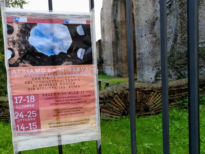 Anche quest’anno, nonostante l’emergenza sanitaria, ci saranno delle aperture straordinarie per il cd. Tempio di Minerva Medica al termine dei lavori di sostituzione della cancellata/recinzione dell’area.