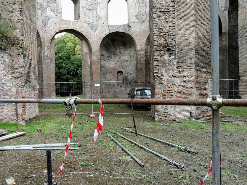 Ultimi ritocchi per le aperture straordinarie del cd. Tempio di Minerva Medica. Beh, certo, è inusuale vedere un’automobile all’interno ma se questo serve a rendere più godibile e meno problematica la visita nei giorni dedicati, ben vengano anche situazioni di questo genere.