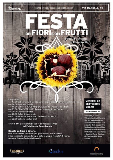 - Ore 12.15: Spettacolo teatrale “Una tempesta” a cura di ArteStudio, in collaborazione con Binario95, con regia di Cateriona Galloni con gli ospiti di Binario95. A seguire degustazione di Sanpietrini di Andrea Fassi