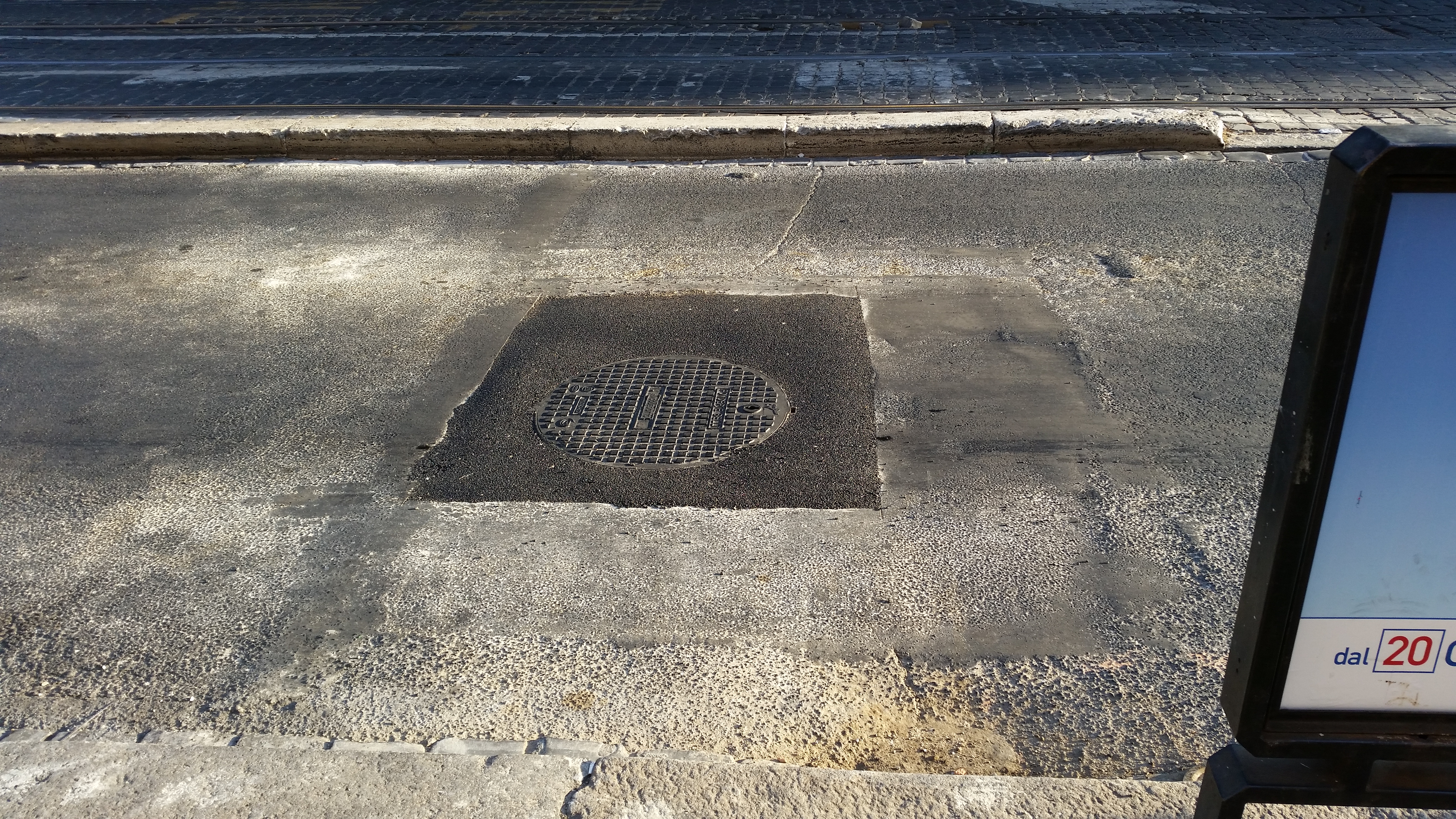 A lavoro effettuato ci siamo recati sul posto ed abbiamo avuto una spiacevole sorpresa: a parte la qualità mediocre del rattoppo, infatti dopo poche ore la buca (anche se ovviamente meno profonda) era già ricomparsa, ci siamo accorti che un precedente intervento era già stato compiuto alla stessa altezza sulla corsia del tram e c’è una crepa che attraversa tutta la strada da marciapiede a marciapiede.
