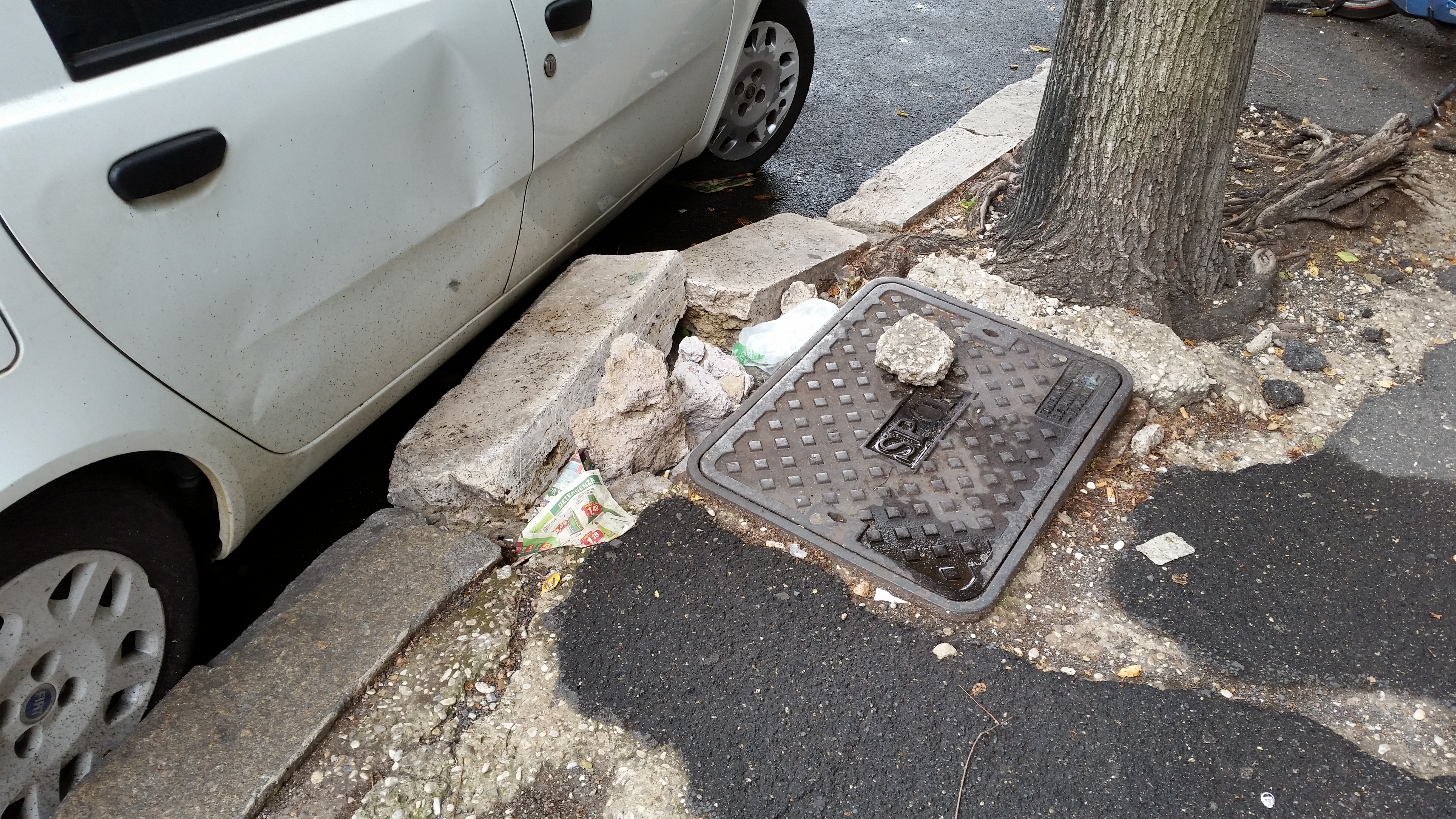 Poi quelle ricorrenti a via Giolitti, ogni anno dopo la stagione delle piogge appena prima del semaforo all’incrocio con via di S.Bibiana e nelle strade limitrofe sembra di essere usciti da un bombardamento: quest’anno se ne è occupato anche Roma Today con delle foto inviate da un lettore e, miracolo, dopo qualche ora dalla pubblicazione, e arrivato il solito camioncino che le ha attappate :