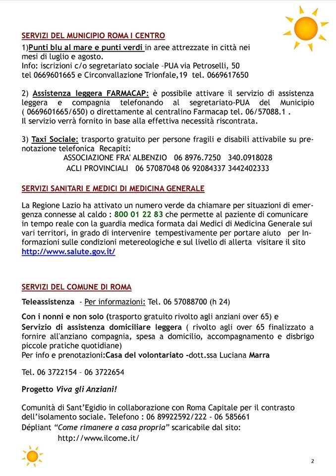- Sorvegliare e prendersi cura delle persone a rischio Nei periodi prolungati di caldo intenso, prestare attenzione a familiari o vicini di casa anziani, specialmente se vivono da soli e, ove possibile, aiutarli a svolgere alcune piccole faccende, come fare la spesa, ritirare i farmaci in farmacia etc. Segnalare ai servizi socio-sanitari eventuali situazioni che necessitano di un intervento, come persone che vivono in situazioni di grave indigenza o di pericolo per la salute (es. i senza tetto in condizioni di grave bisogno).