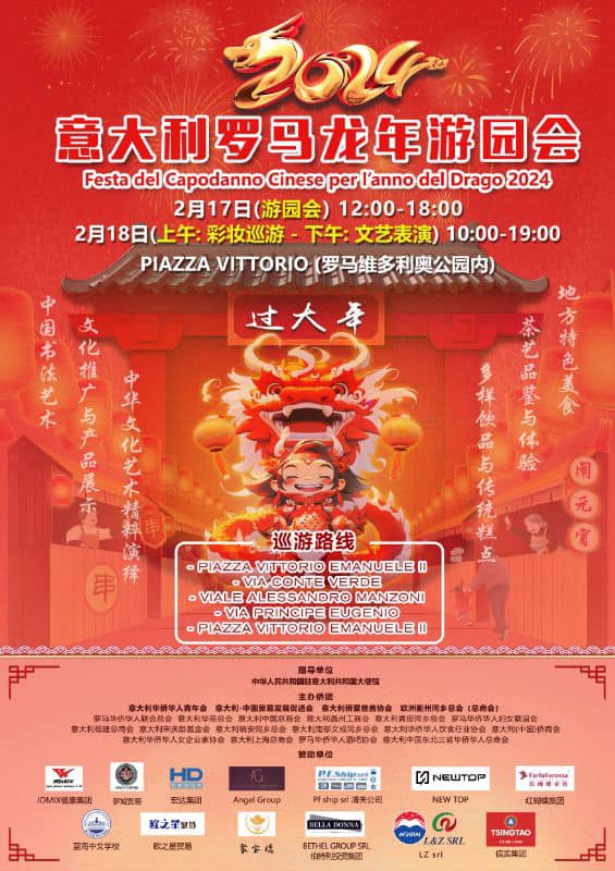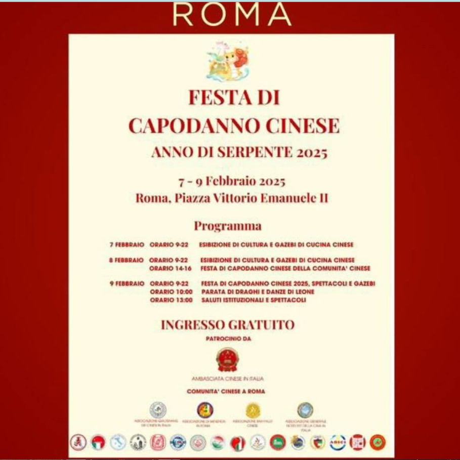 Il 9 febbraio invece segnerà l’apice di questa straordinaria celebrazione, con esibizioni culturali e culinarie previste dalle 9:00 alle 21:00. Alle 10:00, si inizia con una vivace parata di draghi e danze del leone. Alle ore 13:00, l’Ambasciatore Cinese e tutti gli ospiti italiani saranno presenti per l’inizio della cerimonia. Alle 14:00, si terranno i vari spettacoli del “Festival del Capodanno Cinese della Comunità Cinese con la magia di lanterne, uno spettacolare show di luci, divertenti giochi di indovinelli. Alle 15:00 si terrà la premiazione. I partecipanti avranno l’opportunità di gustare piatti cinesi, esplorare i gazebi dedicati alla cultura cinese e connettersi con la comunità cinese di Roma.