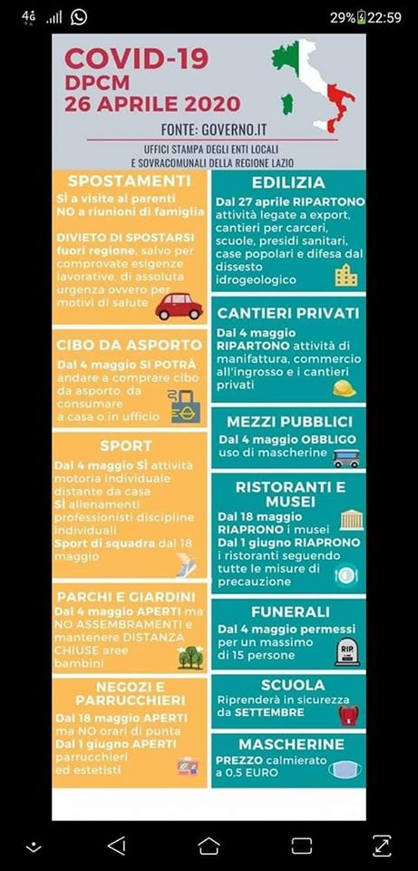 Il DCPM del 26 aprile 2020 pubblicato in maniera più schematica ordinato per articoli ed allegati