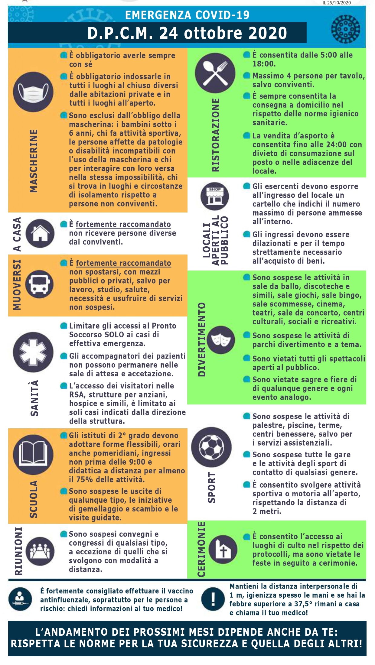 Il DPCM del 24 ottobre 2020 con la relativa infografica e gli allegati