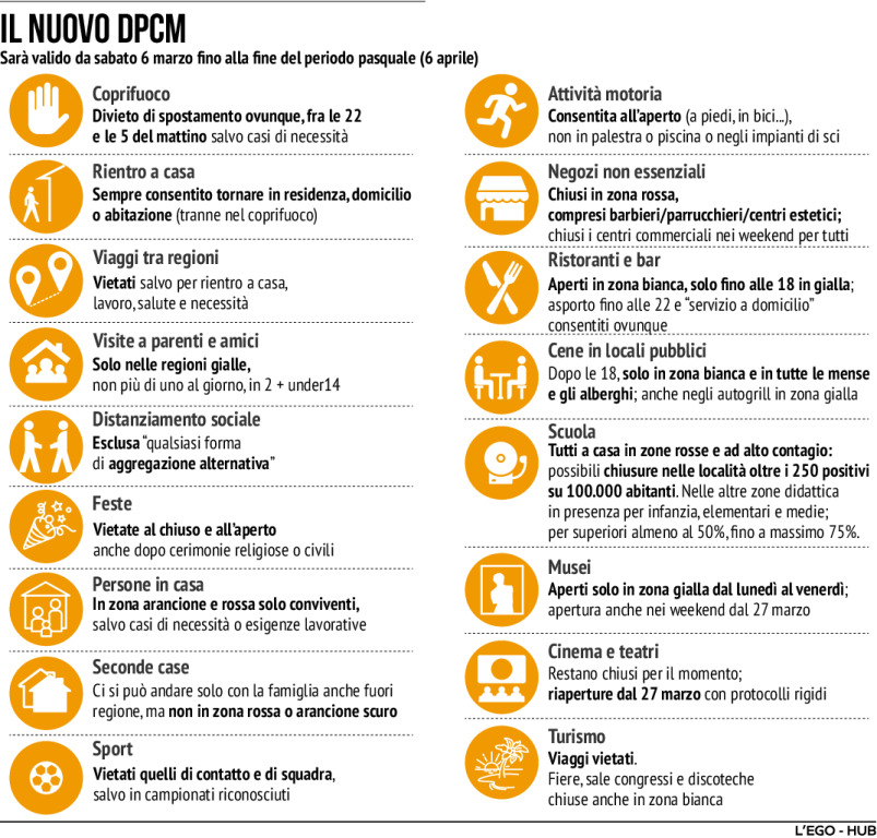 Il DPCM del 2 marzo 2021: le infografiche e il testo originale con le nuove disposizioni anti contagio