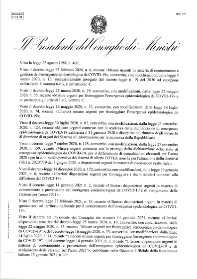 Il testo originale del DPCM del 14/01/2021 con gli allegati