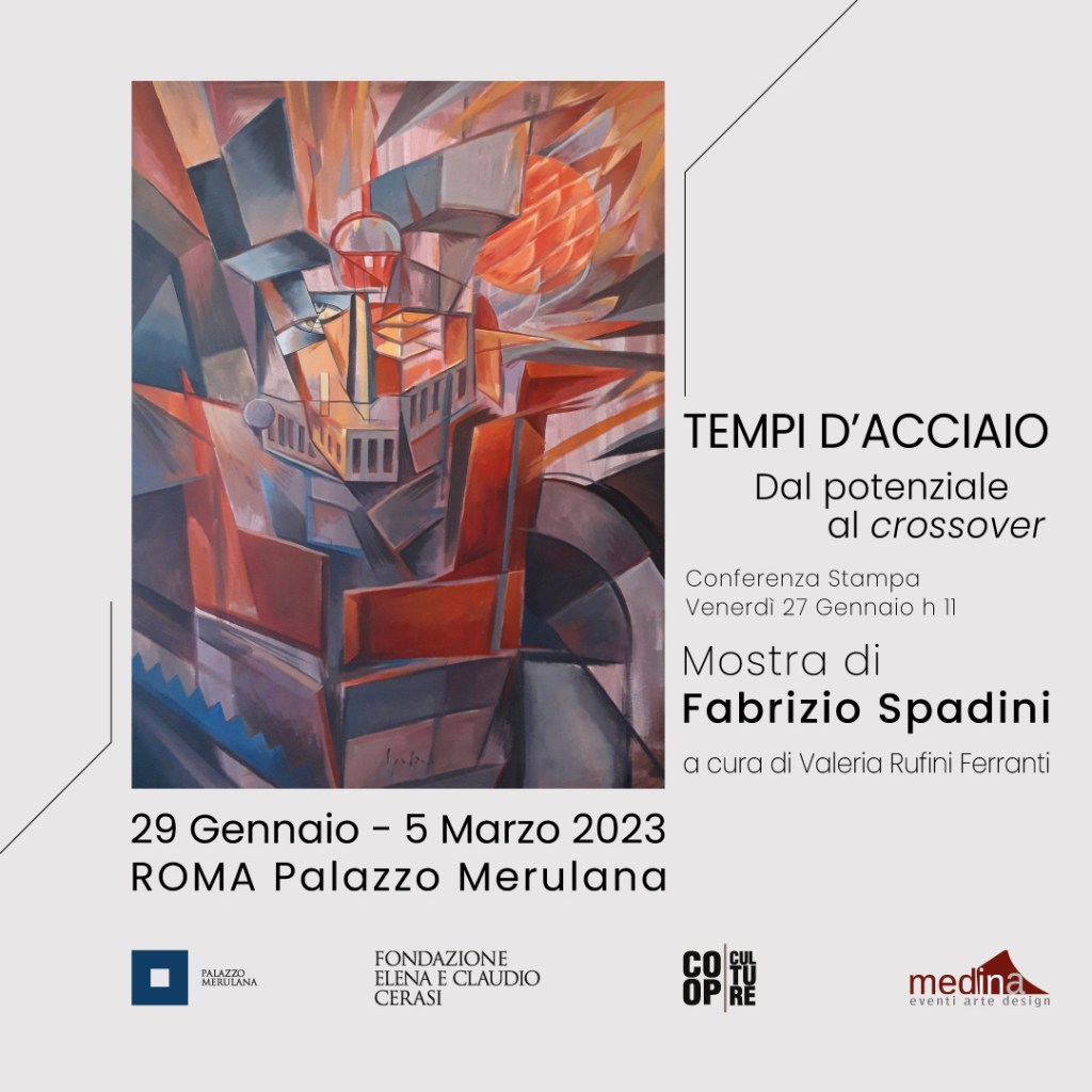Palazzo Merulana, in sinergia con Fondazione Elena e Claudio Cerasi e CoopCulture, è lieto di ospitare la mostra personale di Fabrizio Spadini, “Tempi d’acciaio. Dal potenziale al crossover”, a cura di Valeria Rufini Ferranti e organizzata da Medina Art Gallery.