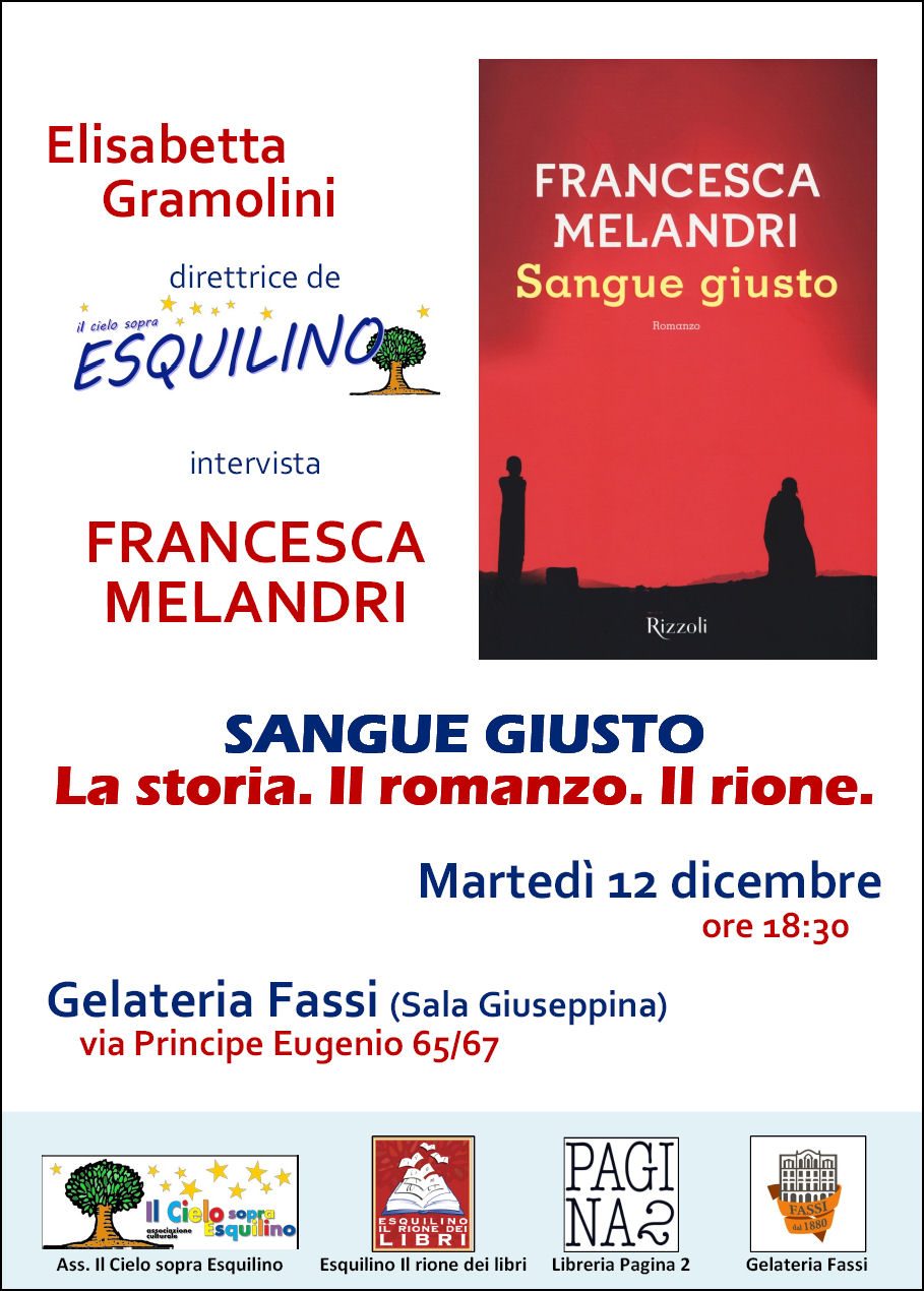 Si parlerà di SANGUE GIUSTO, edito da Rizzoli: La storia, il romanzo, il rione, in un appuntamento organizzato in collaborazione con Libreria Pagina 2, Esquilino il rione dei libri e Associazione Il cielo Sopra Esquilino.