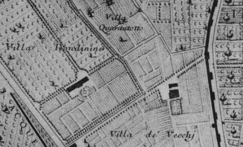 A questo proposito ecco un particolare dell’area interessata ricavato dalla Pianta del Nolli del 1748