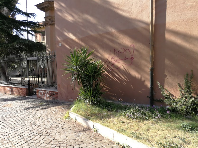Di nuovo imbrattato il muro esterno della chiesa di Santa Bibiana a via Giolitti. Non si fa in tempo ad abituarsi al muro ripulito che i soliti vandali (che restano sempre impuniti) ricominciano con i loro assurdi graffiti insozzandolo dopo che era stato ripulito per l’ennesima volta alla fine dello scorso anno