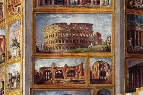 Ma che il Pannini amasse questo monumento e lo ritenesse tra quelli più importanti dell’antichità classica lo testimonia questa ulteriore sua opera in cui immagina una enorme struttura con molte sculture originali e i quadri di tutti i più importanti monumenti di Roma Antica, una sorta di Museo virtuale ante litteram