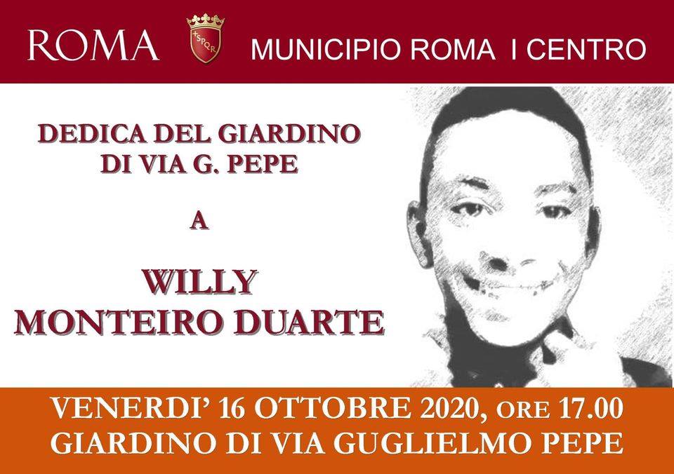 L’intitolazione, decisa dal I Municipio, avverrà durante una cerimonia pubblica alle ore 17 di venerdì 16 ottobre, alla presenza della presidente Sabrina Alfonsi, della famiglia di Willy e della comunità capoverdiana locale.