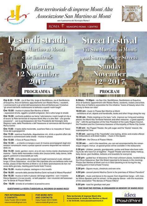 12 novembre 2017 “Festa di strada” al Rione Monti e strade limitrofe