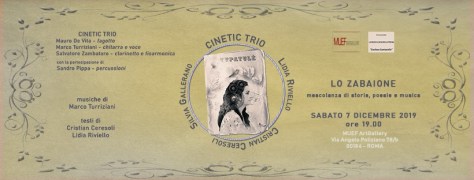 La parte musicale eseguita da i Cinetic Trio (Mauro De Vita; Marco Turriziani; Salvatore Zambataro) con la partecipazione speciale di Sandro Pippa.