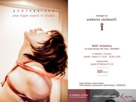 Muef Art Gallery ospita la Mostra Fotografica di Umberto Stefanelli “pHOTogeisha. One night stand in Osaka” inserita nell’ambito di Roma Fotografia 2020 EROS promossa dall’associazione Roma Fotografia, con il patrocinio della Regione Lazio e del Comune di Roma che si svolgerà dal 22 febbraio al 6 aprile in tutta la città di Roma.