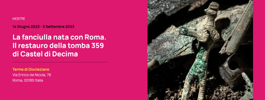 Un servizio andato in onda sul Canale “RAI Cultura” sulla mostra visibile fino al 3 settembre presso il Museo Nazionale Romano – Terme di Dicleziano denominata “La fanciulla nata con Roma” in cui si può ammirare una sepoltura di una fanciulla di circa 20 anni la cui nascita si può ritenere coeva a quella di Roma universalmente riconosciuta nel 753 a.C.