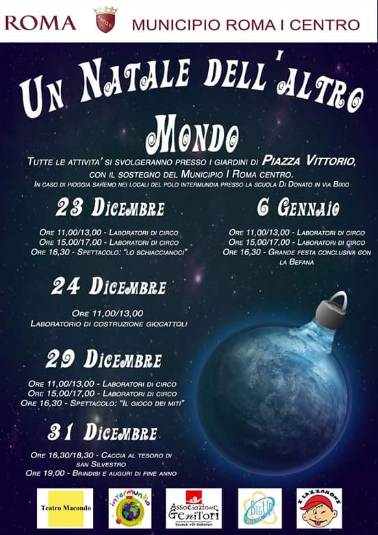 Festeggeremo il Natale assieme a tutti i bambini del rione Esquilino e a tutti quelli che amano Piazza Vittorio Emanuele II in Roma. Vi aspettiamo sotto i portici per un evento diffuso tra suoni e colori.