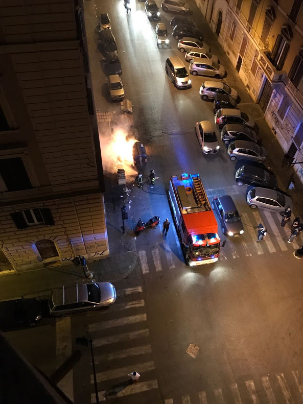 E la via è stata invasa da fumo e un acre odore di bruciato
