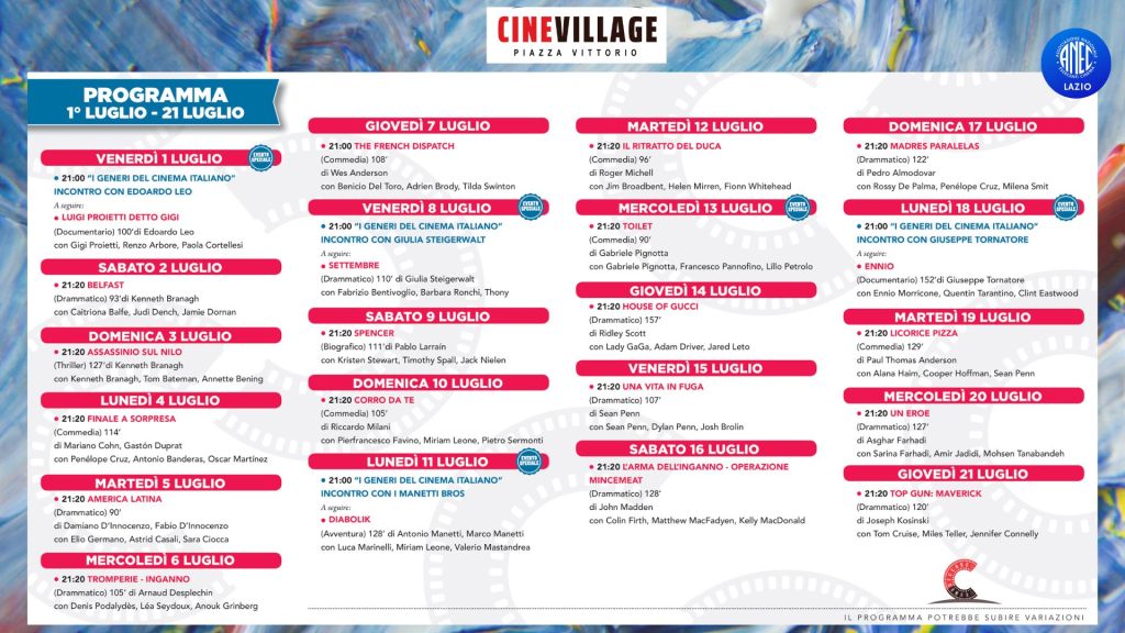 “Notti di Cinema a Piazza Vittorio -XXII edizione” il programma fino al 31 luglio 2022