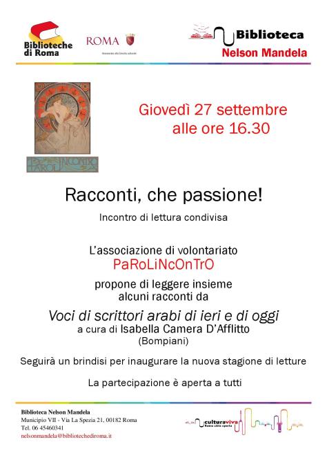 27 settembre 2018 torna “Racconti che passione” Incontri di lettura condivisa presso la Libreria Nelson Mandela