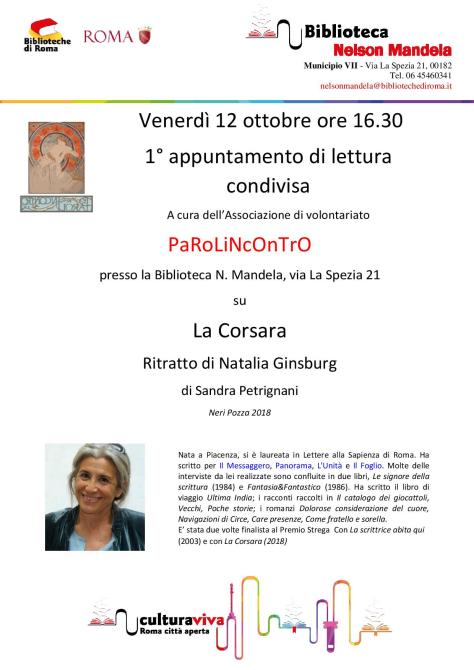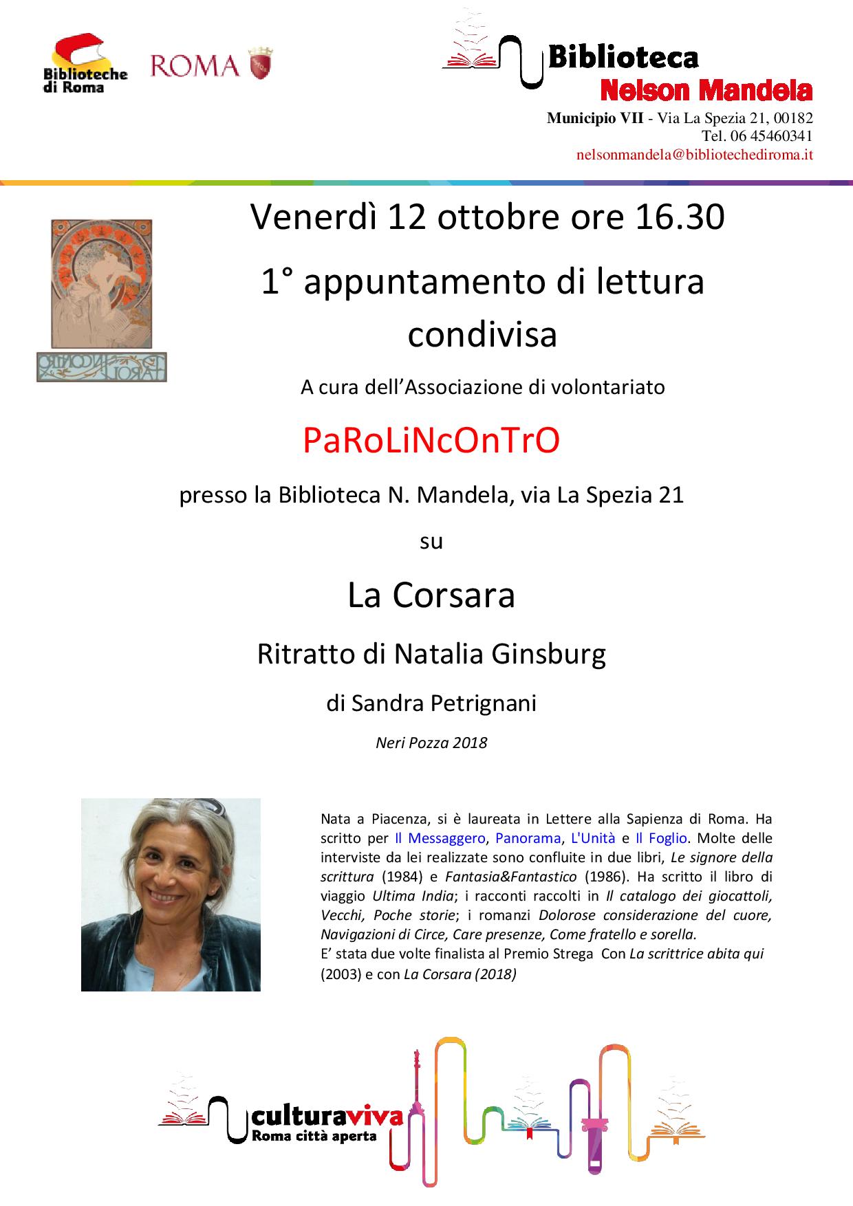 25 ottobre 2018 – Secondo appuntamento di lettura condivisa “La Corsara” alla Libreria Nelson Mandela