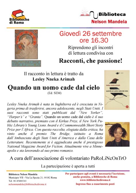 26 settembre 2019 “Quando un uomo cade dal cielo” incontro di lettura condivisa presso la Libreria Nelson Mandela