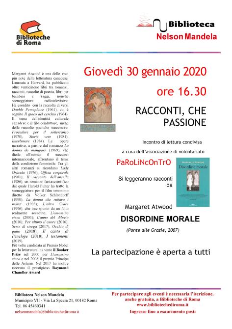 30 gennaio 2020 “Disordine Morale” lettura condivisa presso la Libreria Nelson Mandela