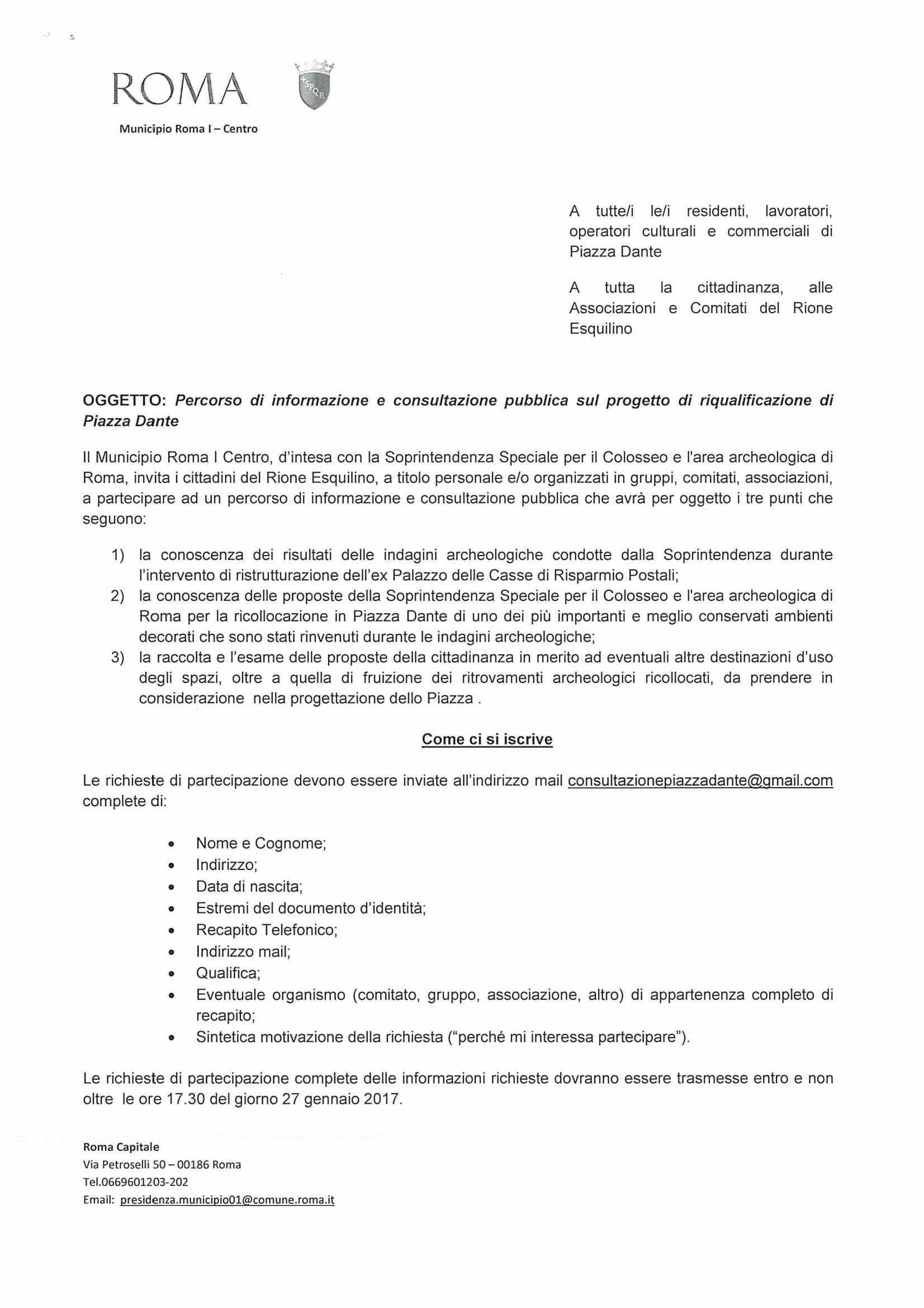 ANTHROPOLIS, ASSOCIAZIONE LINGUA E CULTURA CINESE ZHONG HUA, ASSOCIAZIONE DHUMCATUU, ASSOCIAZIONE GENITORI SCUOLA DI DONATO, ASSOCIAZIONE IL COLLE INCANTATO, ASSOCIAZIONE PIAZZA VITTORIO, ASSOCIAZIONE POLIADE, CEMEA DEL LAZIO, CENTRO DI AGGREGAZIONE GIOVANILE MATEMU’, CENTRO PER LA FAMIGLIA – COOPERATIVA COTRAD, CENTRO SOCIALE ANZIANI ESQUILINO, CIES, CITTADINANZA ATTIVA, CIVICO ZERO, COMITATO VIA BALILLA E VIE STORICHE DELL’ESQUILINO, CONSORZIO CO.RI.ME, COOP. MEDITERRANEO MOSAICO DI CULTURE, COOPERATIVA FORMULA SOCIALE, DGPI BRONZE WING INTERNATIONAL, DGPI SOLID BROTHERS, ESQUILINOTIZIE, FEDERAZIONE DELLE ASSOCIAZIONI DELLA COMUNITA’ CINESE DI ROMA, FOCUS CASA DEI DIRITTI SOCIALI, GRUPPO PAROLINCONTRO, ISTITUTO COMPRENSIVO “D. MANIN”, ITALIA BANGLADESH VILLAGGIO ESQUILINO ONLUS, MUSEO STORICO DELLA LIBERAZIONE DI VIA TASSO, PIAZZA VITTORIO CRICKET CLUB, POLO INTERMUNDIA-MUNICIPIO ROMA CENTRO STORICO, PROGETTO TUTTI IN PIAZZA, RETE SCUOLEMIGRANTI, SCUOLA DI MUSICA ALL’ESQUILINO, SCUOLA DELL’INFANZIA COMUNALE “DI DONATO” E “BACCARINI”, SOCIETA’ COOPERATIVA SOCIALE ONLUS CIVICO ZERO, SILVIO MARCONI – ANTROPOLOGO, STEFANIA ZAGANELLI – INSEGNANTE TAI CHI.