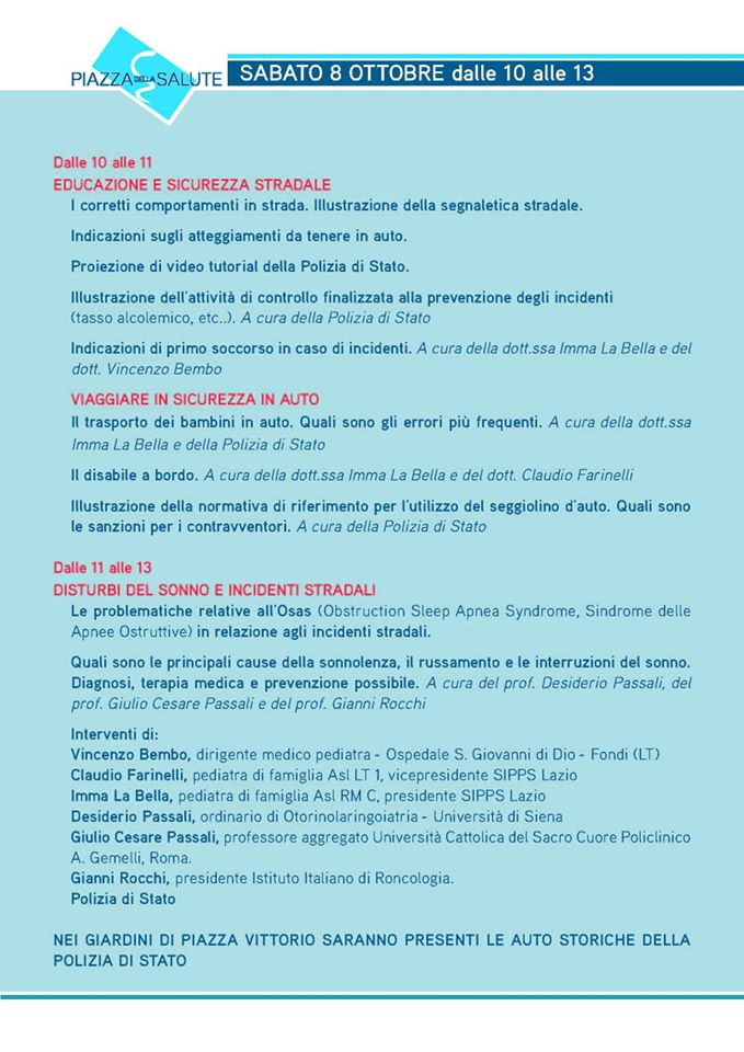 La manifestazione è inoltre realizzata in collaborazione con la Fondazione Enpam, nell’ambito dell’iniziativa “Piazza della Salute” e con il Municipio Roma I Centro.