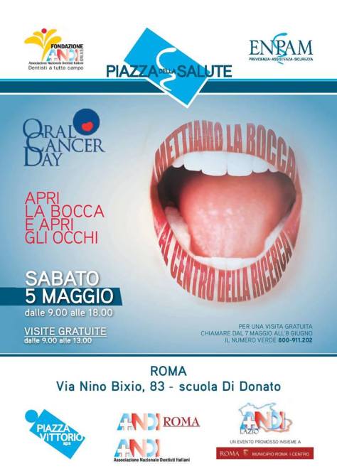 In Piazza della Salute i dentisti dell’Andi faranno controlli gratuiti della bocca e sarà distribuito materiale informativo sui corretti stili di vita per prevenire le neoplasie di gengive, lingua, e tessuti molli della bocca.