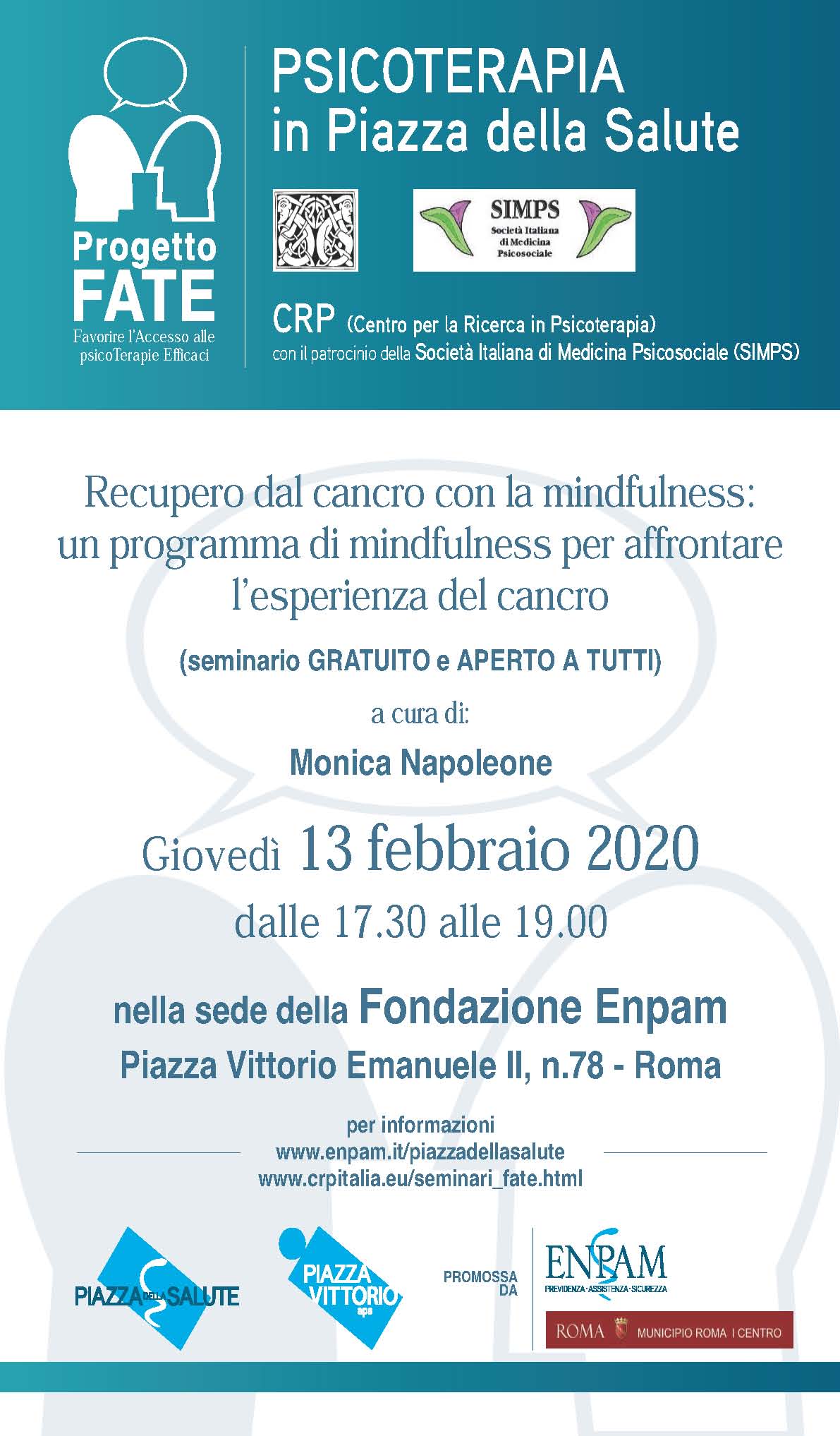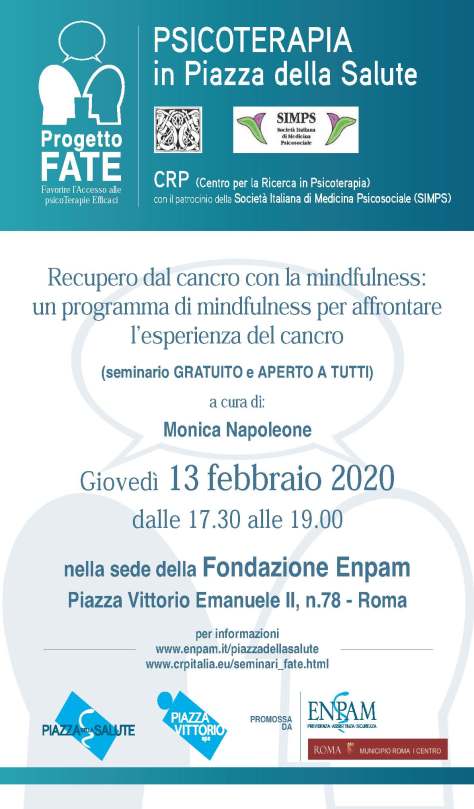 13 febbraio 2020 “Recupero del cancro con la mindfulness” seminario gratuito presso la sede della Fondazione Enpam